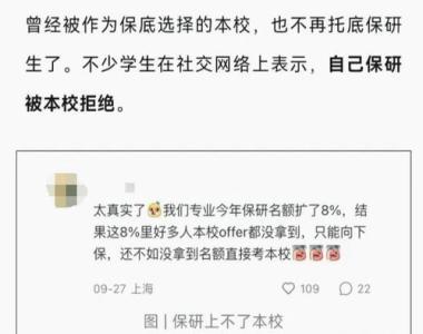 很多名校热门专业每年的推免名额很多,有的甚至占了当年招生人数的一半甚至更多,留给统考生的名额就很少,甚至个位数,导致考研竞争加剧。这也是同学们在择校时需要考虑的一个因素。